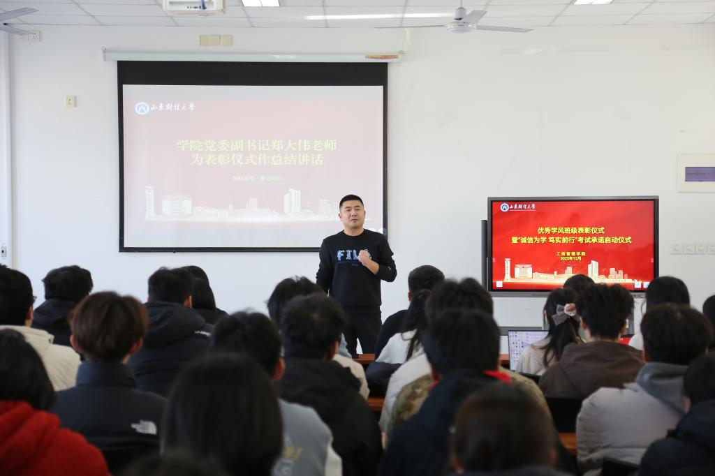 在章丘校区举办2025学年优秀学风班级表彰活动暨诚信应考启动仪式。学院党委副书记郑大伟、章丘校区辅导员老师、各年级主要学生干部及获奖班级代表参加活动。