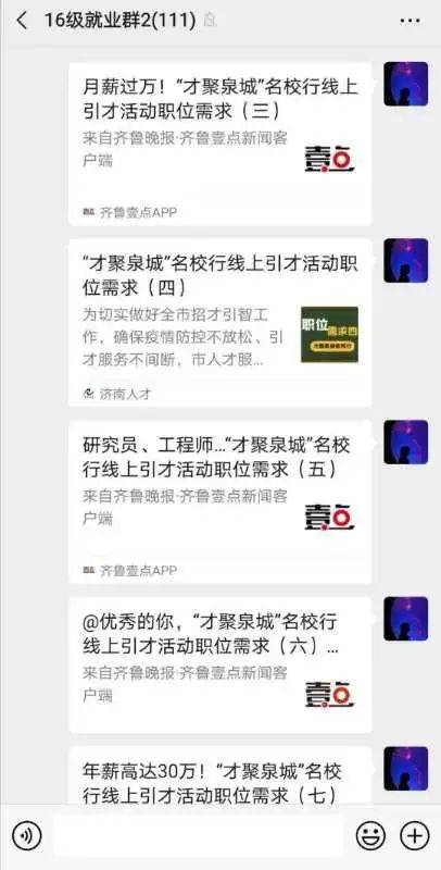 交流群、公众号,就业推送更广泛。“老师们高频率发布他们接触到的可靠的就业信息与就业政策,贴心地给我们提供就业指导服务,我很感动也很受鼓舞。”2020届毕业生小巩同学通过线上应聘顺利找到了心仪的工作岗位,她现在已经是中信证券股份有限公司的一员了。新澳彩资料有就业、考研、出国等五个毕业生交流群,新澳彩资料微信公众号“财小商”单独设立了“就业指导”版块,定期发布招聘信息、就业政策和就业手续办理等内容。1500多条招聘信息,是疫情期间毕业班辅导员老师们一条一条发布推送出来的。有了畅通的就业信息渠道,就业数量和就业质量就更有保障了。