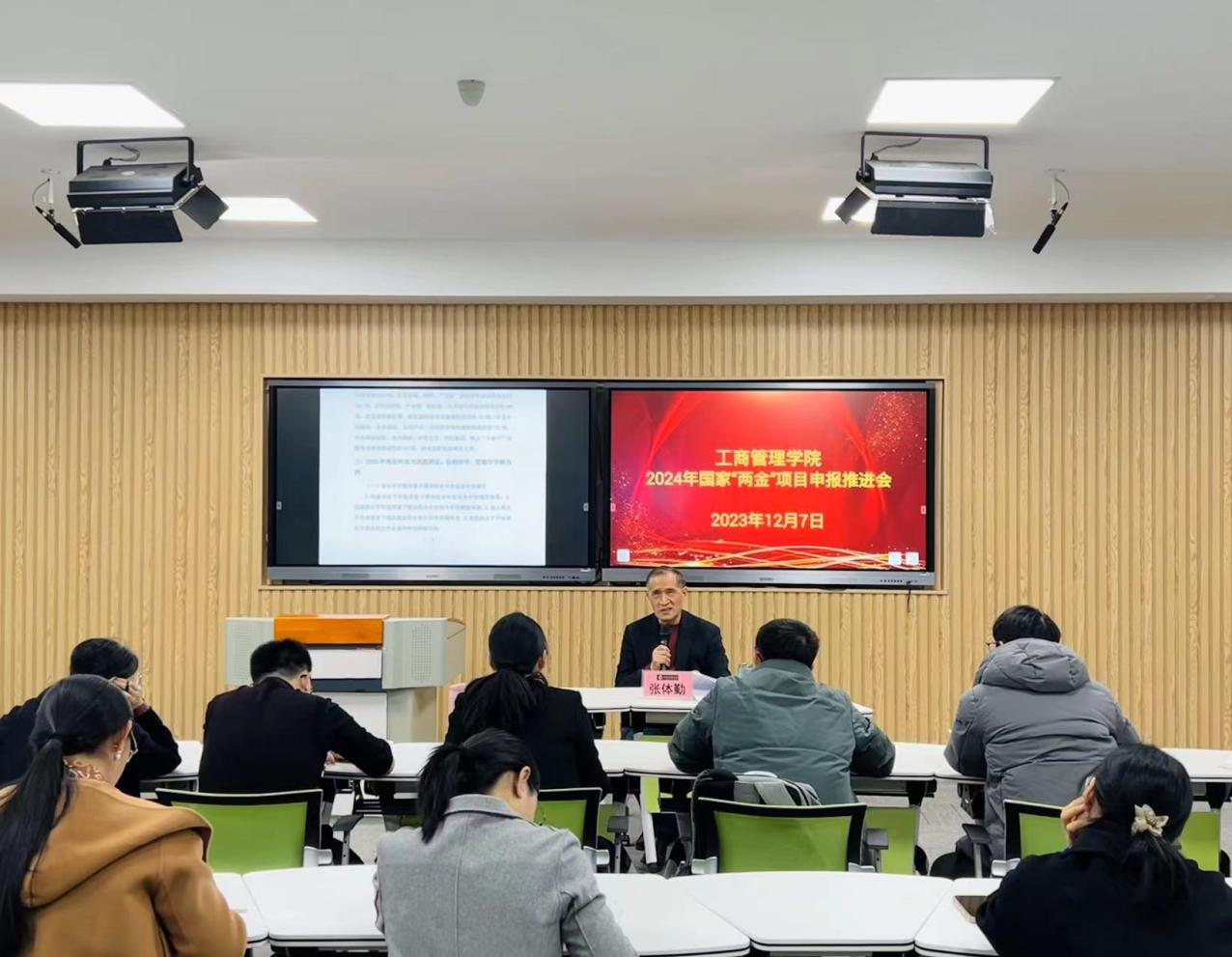 在逸夫楼Y104召开2024年国家“两金”项目申报推进会暨新澳彩资料科研工作发展座谈会。本次会议特邀张体勤教授做主题分享,会议由院长苏昕主持。