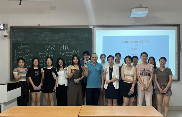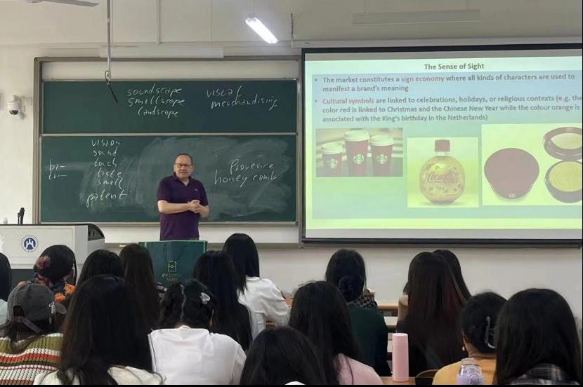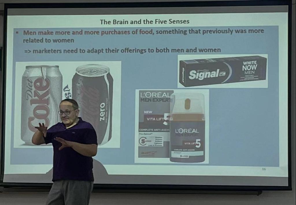 学生讲授为期两周的感官营销课程。授课内容包括感官营销的内涵、价值和实施策略等主题。师生共同探讨了数字经济、AI技术快速发展背景下,营销方式、营销技术的演进趋势以及感官营销在品牌建设、消费者行为分析等方面的最新应用和研究进展。课程加深了同学们对跨文化背景下感官营销的认识和理解;合作教师在与Erhard Lick教授交流课堂教学心得的同时,也拓展了自身学术视野。