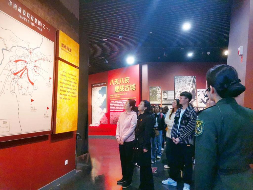 怀着这份深沉的缅怀,师生们缓缓步入了详细记载着那段峥嵘岁月的纪念馆,这里的每一个角落,都浸润着庄严而肃穆的气息,同学们在此静静地聆听讲解员的讲述,参观着革命历史照片、手稿原件、地图等实物资料,见证了在那个战火纷飞的年代,先烈们的英勇与坚定,共同缅怀革命志士为了国家民族独立解放、为了人民群众谋福祉而英勇献身的不朽功勋,深切体会那一段段可歌可泣的悲壮史诗。
