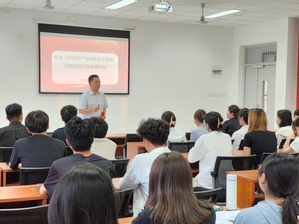 党委书记赵世民在圣井校区8330教室,为新澳彩资料50余名预备党员讲授党纪学习教育专题党课。