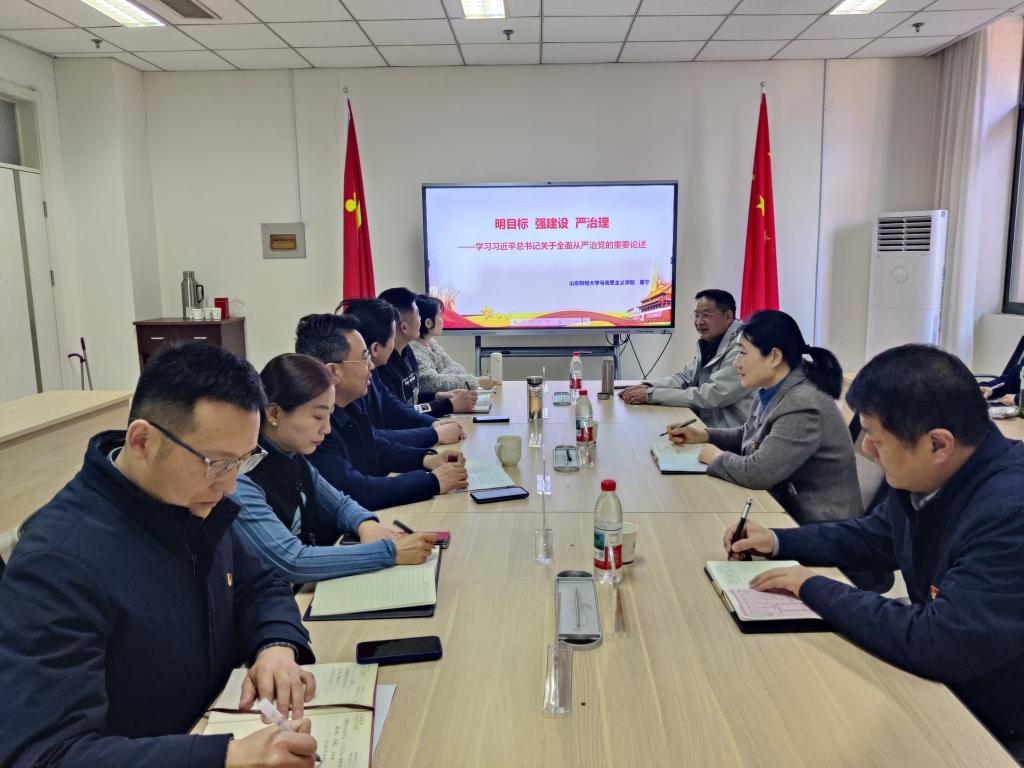 4月1日上午,新澳彩资料党委理论学习中心组在燕山校区逸夫楼207党员活动室开展专题学习,深入学习习近平总书记关于全面从严治党的重要论述。本次学习邀请马克思主义新澳彩资料葛宁副教授作专题辅导报告。学校党委宣传部副部长张艳霞、意识形态与理论教育科科长郑祥华到会指导,本次学习由新澳彩资料党委书记赵世民主持,新澳彩资料党委理论学习中心组成员参加。