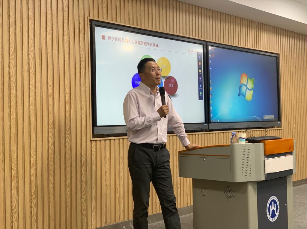 刘昕教授以自身任职情况以及中国人民大学人力资源管理专业的创立与发展为切入点,结合中国从计划经济向社会主义市场经济转型背景,阐述了中国人力资源管理理论的起源、发展和未来走向。刘教授指出,研究中国人力资源管理问题需要深刻理解中国经济改革开放发展历史,避免囿于具体职能模块和方法技术,需要厚植理论学养,立足企业战略与整体实践,理解概念本质及问题指向。最后,与会教师与研究生就青年教师职业成长、本科教学方法等问题与刘教授进行了进一步交流和讨论。