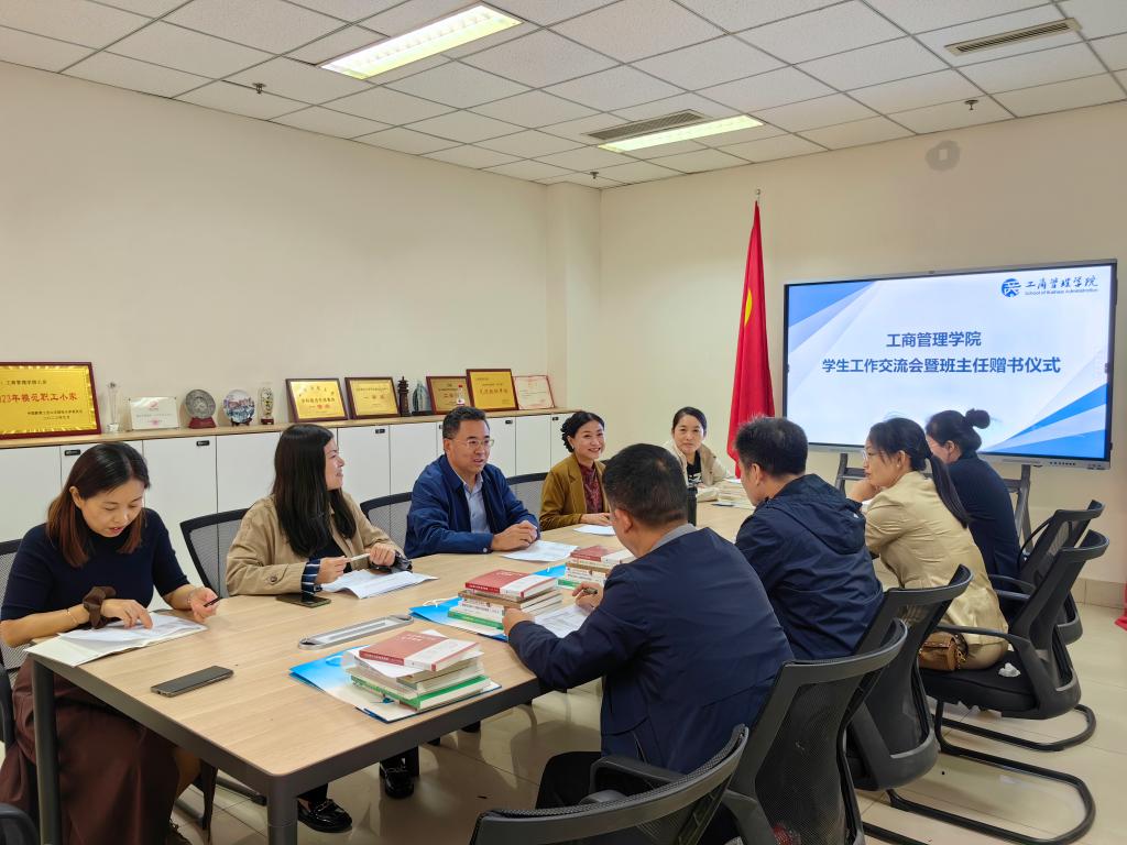 在燕山校区逸夫楼207会议室举办了学生工作交流会暨班主任赠书仪式,新澳彩资料党委书记赵世民、副书记彭艳红,侯昭瑾、新澳彩资料辅导员、班主任老师参加会议。交流会由学工办主任陈盈君主持。